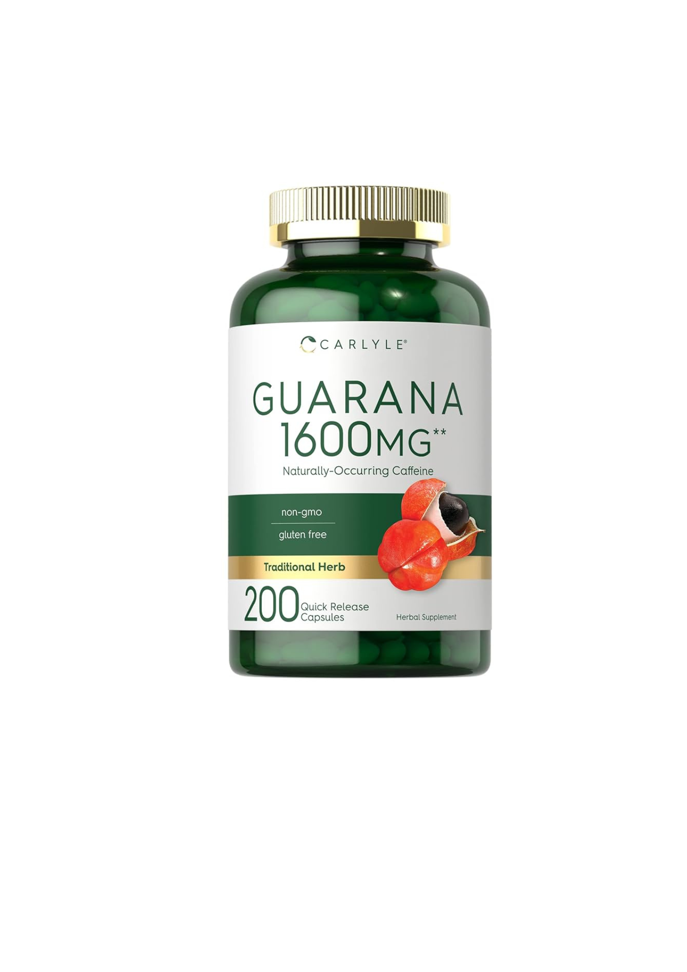 This supplement provides 1600mg of guarana per serving in quick-release capsules. Guarana is a traditional herb native to the Amazon rainforest and a natural source of caffeine. The product is designed to provide a sustained energy boost, enhance mental focus, and support endurance. It is a lab-tested, non-GMO, and gluten-free formula, free from artificial additives.